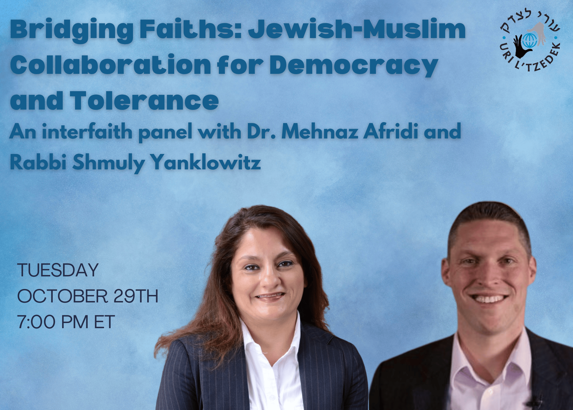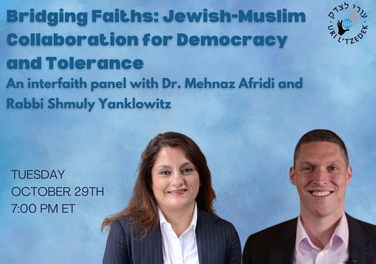 Rabbi Dr. Shmuly Yanklowitz and Dr. Mehnaz Afridi held an online discussion titled, “Bridging Faiths: Jewish-Muslim Collaboration for Democracy and Tolerance,” on Tuesday, Oct. 29, 2024.