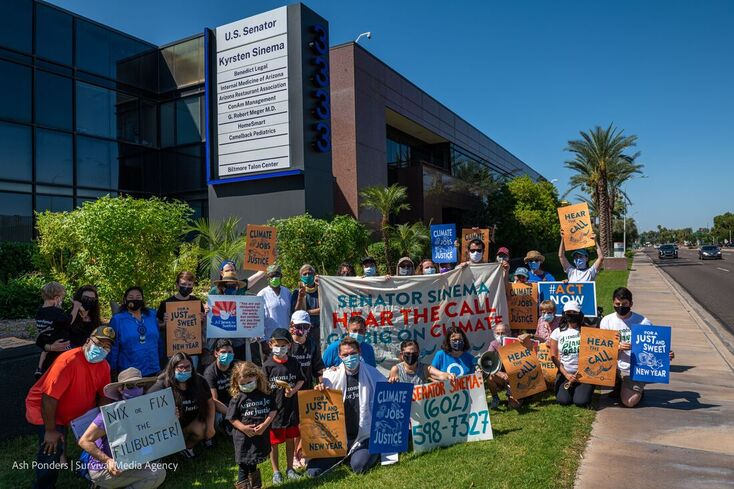 Worried about climate, Jewish activists attempt to sway Sinema. Arizona Jews for Justice organized a rally, Hear the Call: Jews for a Just Recovery Package, outside of U.S. Sen. Kyrsten Sinema’s office at 3333 E. Camelback Rd. The event’s goal was to convince the moderate Democrats to vote yes on the reconciliation package — “with not a penny less.” Their clarion call: “Climate, care, jobs and justice now!”