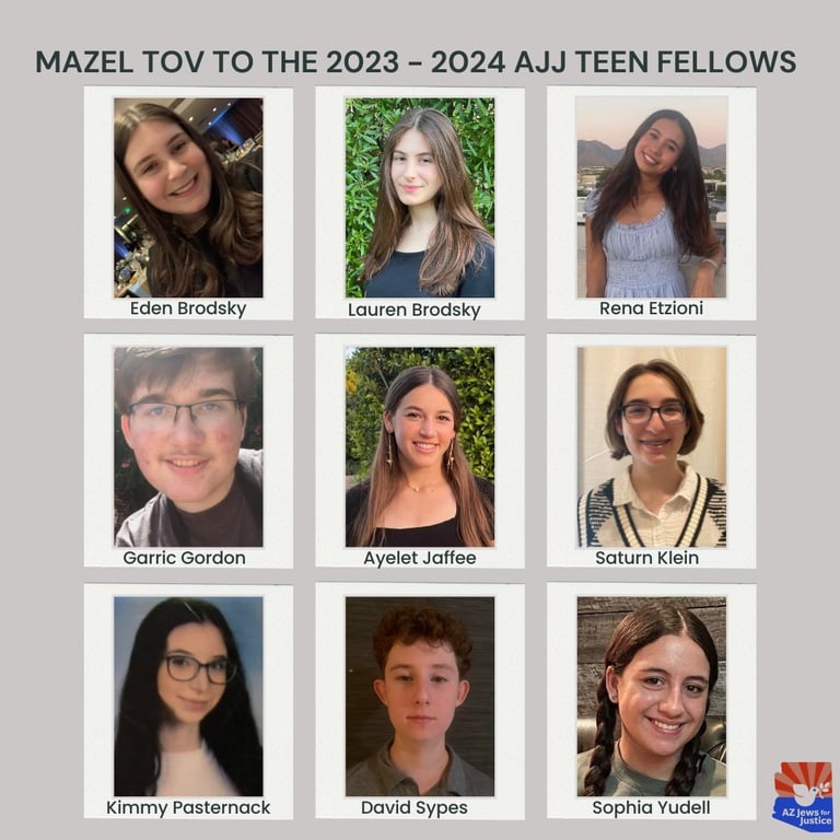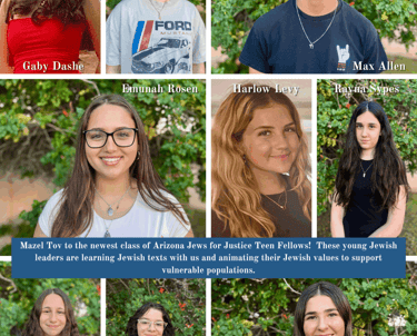 The Arizona Jews for Justice Teen Fellowship Program brings together young people for hands-on learning, leadership development, and meaningful social justice work. Click here to complete this interest form, and we'll keep you updated as applications and program details are released for the 2026-2027 year.